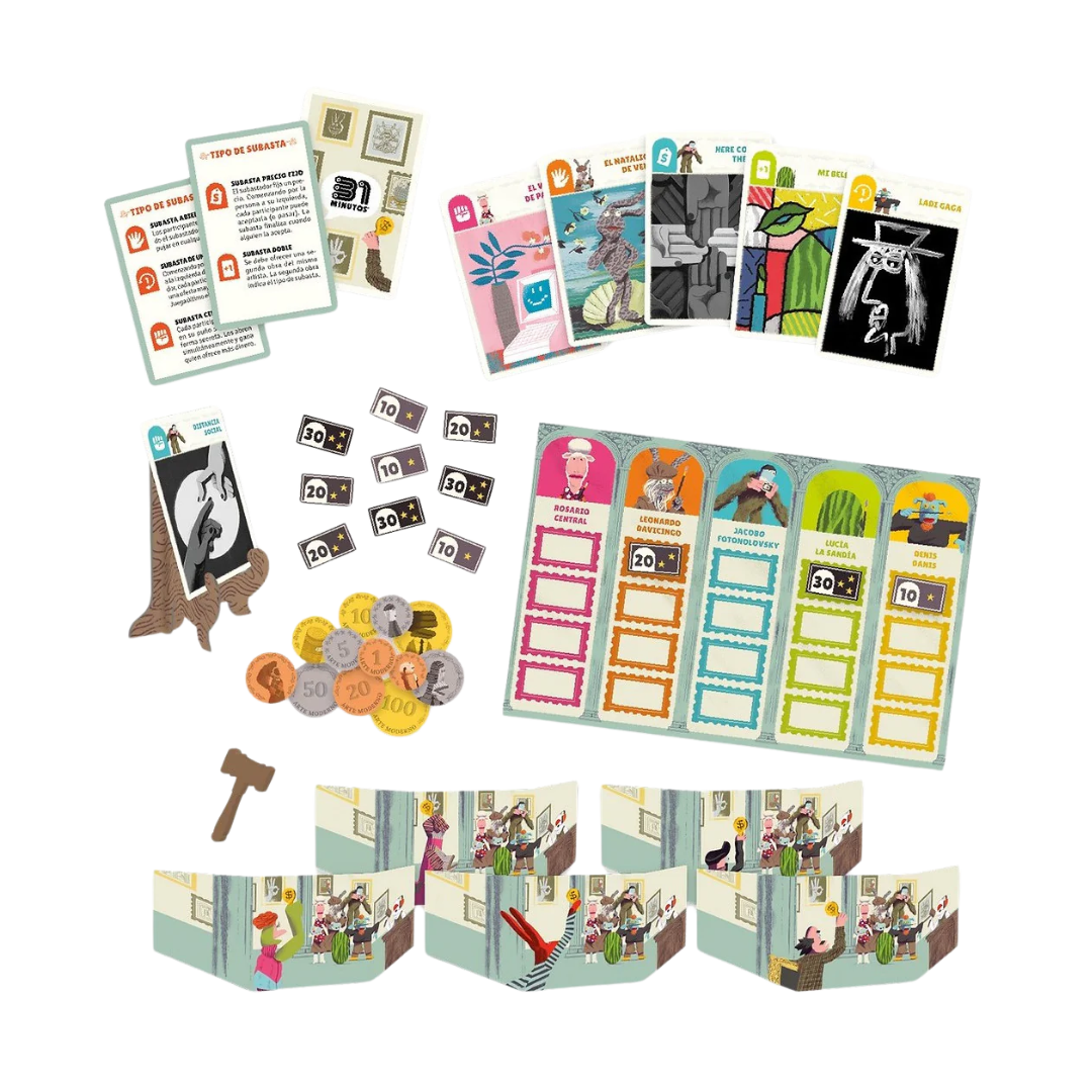En este juego de subastas, los jugadores compiten por adquirir las obras más valiosas… o al menos hacer que parezcan valiosas. Cada ronda se juega con diferentes tipos de subasta: abierta, cerrada, una vuelta, entre otras. Al final, gana quien haya manejado mejor sus recursos y la fama de los artistas para llenar su galería con las piezas más rentables.