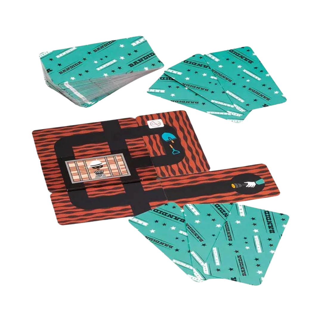 En Bandida, los jugadores trabajan juntos para evitar que la astuta Bandida escape de la prisión. En su turno, cada jugador coloca una carta de túnel en la mesa, expandiendo el laberinto subterráneo. El objetivo es cerrar todas las salidas antes de que el mazo se agote.