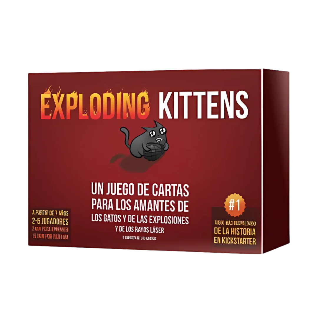 El mazo está lleno de cartas con efectos absurdos: saltar turnos, ver el futuro, robar a tus amigos y, por supuesto, desactivar gatos explosivos con cosas como punteros láser o bocinas de fiesta. El último jugador en pie, sin explotar, gana la partida.