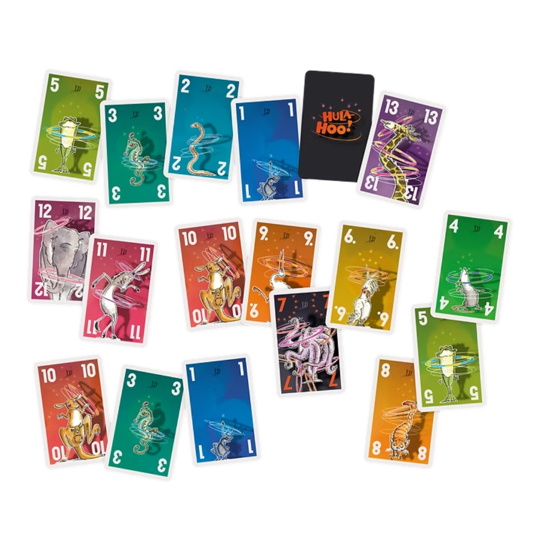 84 cartas numeradas (animales del 1 al 13 y comodines con el número 7)