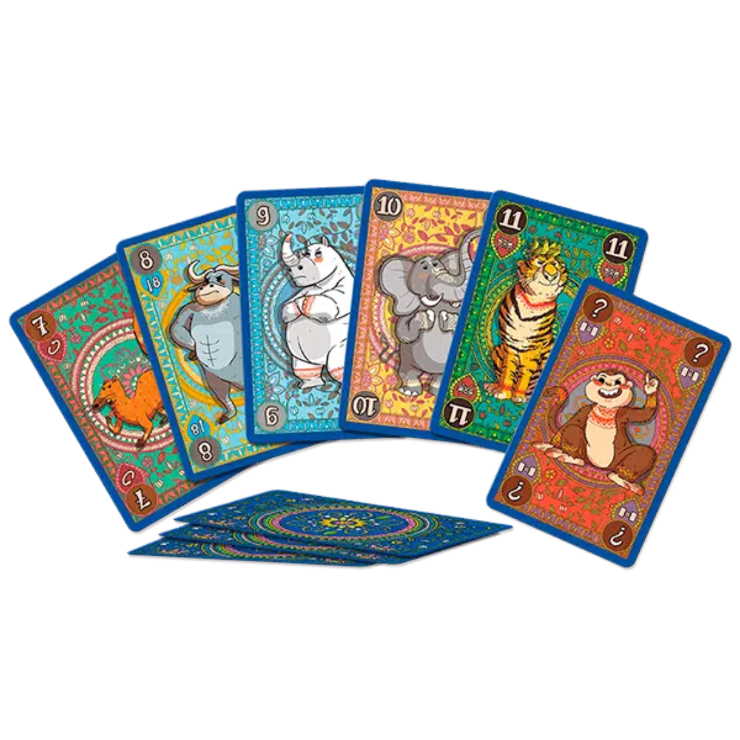 En Mono Glotón, cada jugador tiene cartas de animal en su mano y una fila boca abajo frente a él. En tu turno debes jugar una carta igual o de número superior a la anterior. Además, algunos animales tienen efectos especiales que cambian la dinámica. Gana quien logre vaciar primero su mano y su fila para llevarse un frijol. El juego continúa hasta que uno acumula la mayoría de frijoles.