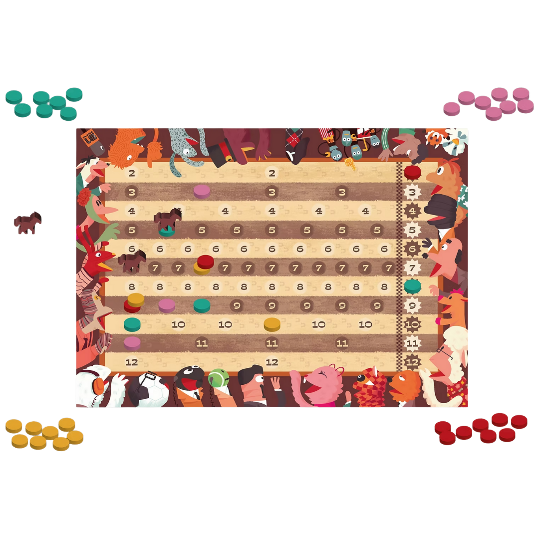En este juego inspirado en el clásico "Can’t Stop", deberás lanzar dados, formar pares y mover tus caballos en las pistas correspondientes. Puedes lanzar cuantas veces quieras para avanzar más... pero si no puedes mover, ¡pierdes todo lo ganado en ese turno!