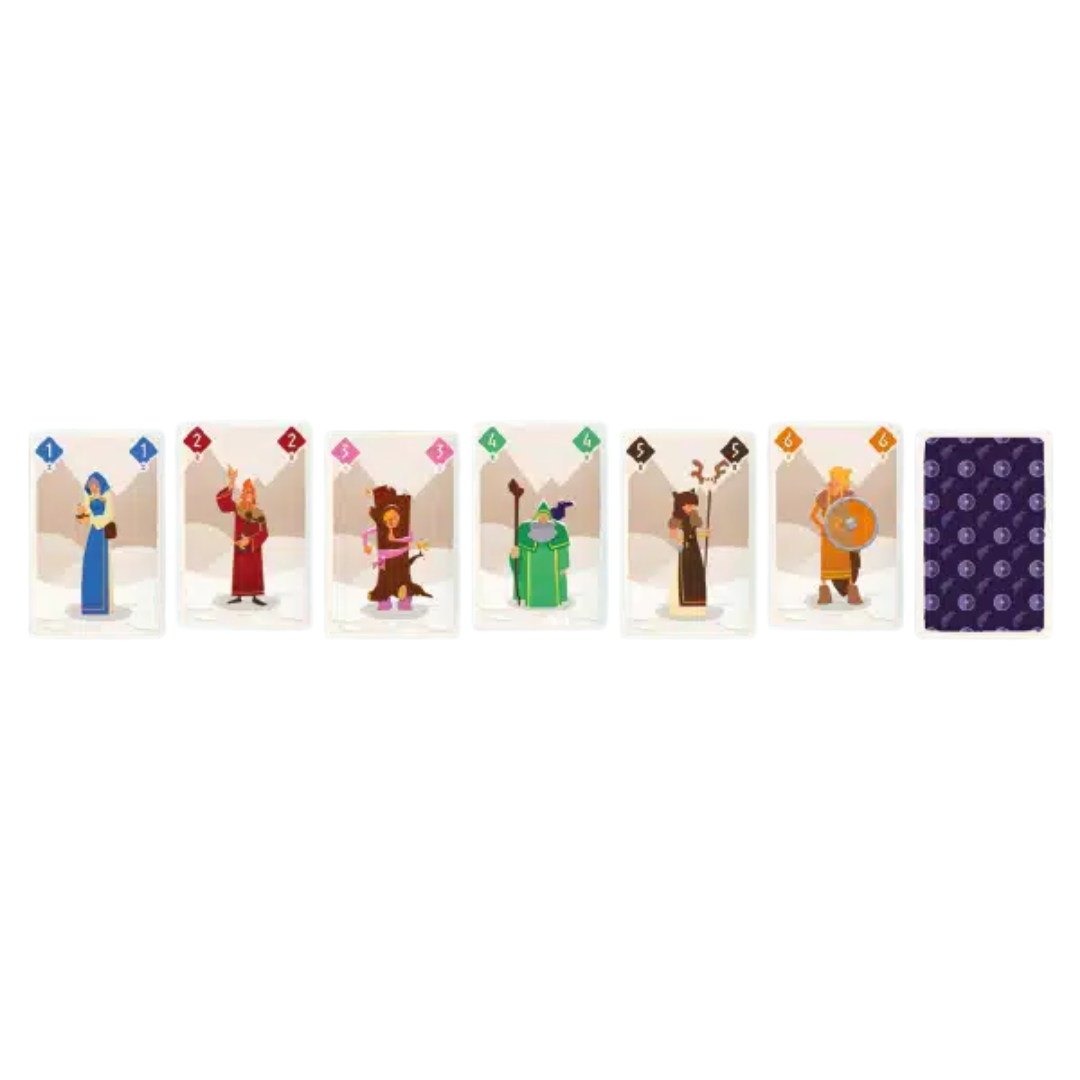 En Odin, los jugadores compiten por deshacerse de todas sus cartas antes que los demás. En cada turno, debes jugar cartas formando un número mayor al anterior, ya sea con una sola carta o una combinación del mismo color. Luego, recuperas una carta de la pila anterior o de un oponente.