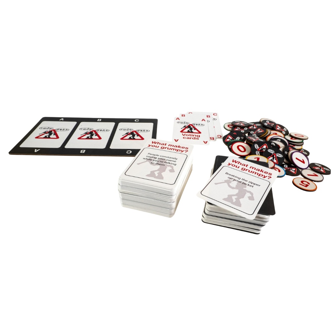 Cada jugador interpreta a un viejo gruñón con una misión clara: ¡molestar a los demás lo más posible! Juega cartas para interrumpir, burlarte y desordenar los planes de los otros, mientras intentas mantener tu compostura. El primero en quedarse sin cartas y conservar su "respeto gruñón", gana la partida.